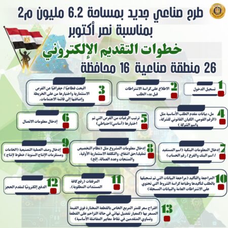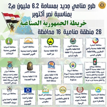إنفوجراف.. طرح 1128 قطعة أرض صناعية جديدة بمناسبة ذكرى انتصارات أكتوبر