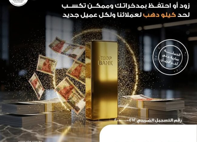 حيث أوضح البنك أن الجوائز تصل إلى كيلو جرام ذهب في خطوة تعكس توجهًا نحو تقديم حوافز ملموسة ذات قيمة استثمارية خاصة في ظل الاهتمام المتزايد من المواطنين بالذهب كأداة ادخارية وتحوطية.