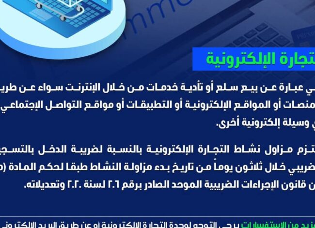 في إطار تطبيق التسهيلات الضريبية الجديدة وتنظيم الأنشطة الرقمية.