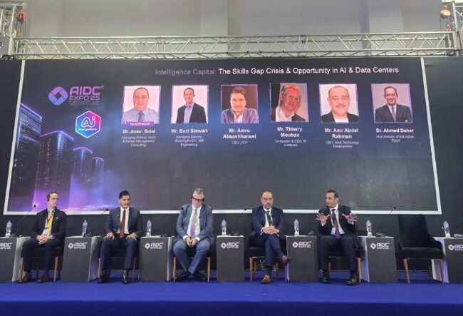 جاءت الجلسة ضمن مؤتمر ومعرض Cairo ICT 2025، جاءت بعنوان “رأسمال الذكاء: أزمة وفرص فجوة المهارات في الذكاء الاصطناعي ومراكز البيانات”، أدارها عاصم جلال، الشريك الإداري في جلال آند كاراني مانجمنت كونسالتنج، الذي طرح تساؤلات جوهرية حول المهارات التي يجب أن يكتسبها الجيل الحالي للنجاح في المستقبل.