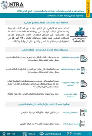 والذي تستند منهجية القياس به على اختبار عينات من المكالمات الصوتية وخدمات نقل البيانات للوقوف على جودة خدمات الاتصالات المقدمة من المشغلين في السوق المصري.