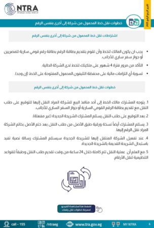 5. مع العلم أن عملية النقل تتم كاملة خلال 24 ساعة من وقت تقديم طلب النقل وطبقًا للقواعد التنظيمية لنقل الأرقام.