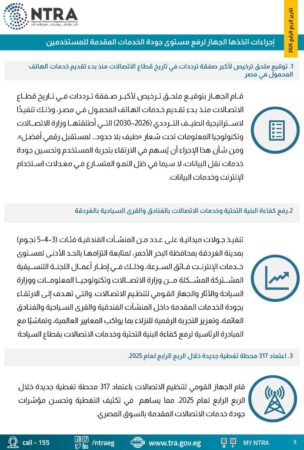 في إطار حرص الجهاز القومي لتنظيم الاتصالات على تعزيز جودة خدمات الاتصالات المقدمة للمستخدمين،
