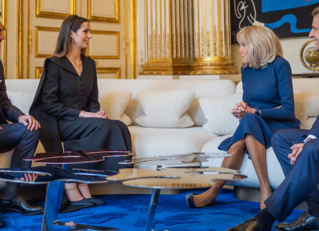 لفتت الأميرة رجوة الحسين الأنظار خلال لقائها مع الرئيس الفرنسي إيمانويل ماكرون وزوجته بريجيت ماكرون، بإطلالة أنيقة اتسمت بالرقي والبساطة.