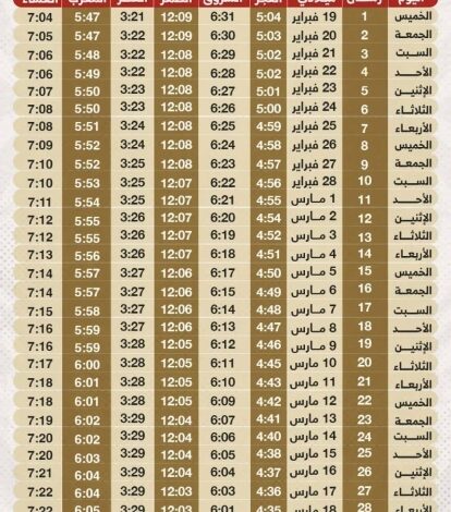 وكشفت إمساكية شهر رمضان لعام 1447 هجريا الموافق 2026 ميلادياً، موعد أذان المغرب غدا الخميس أول أيام رمضان ، حيث يبلغ مدة ساعات الصوم 13 ساعة و 2 دقيقة.