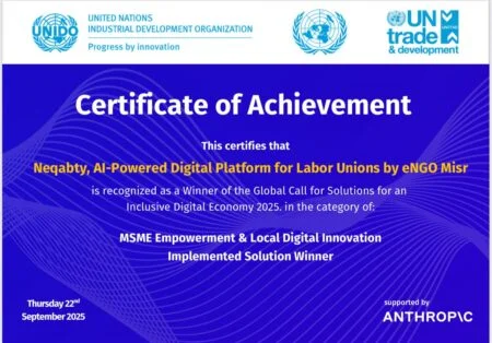 “انجو مصر” تفوز بجائزة الأمم المتحدة عن تكنولوجيا القوى العاملة المدعومة بالذكاء الاصطناعي