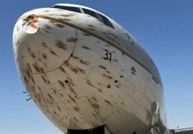 كما نتج عن اصطدام الطيور بالطائرة السعودية، من طراز B777-300ER، خدوش قوية وواضحة على الطائرة،