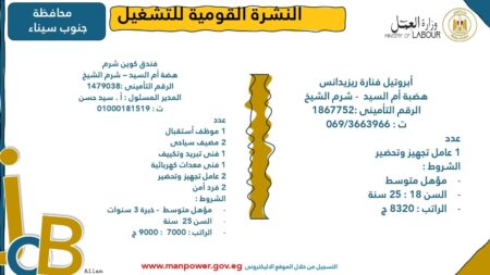 حيث تتضمن فرص عمل جديدة متاحة في مختلف المحافظات، بالتعاون مع شركات القطاع الخاص.