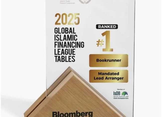 The International Islamic Trade Finance Corporation (ITFC), a member of the Islamic Development Bank (IsDB) Group, has been ranked Global #1 Bookrunner and Mandated Lead Arranger (MLA) in the 2025 Bloomberg and LSEG Data & Analytics Islamic Syndications League Tables, marking five consecutive years of leadership in the Islamic syndications market.